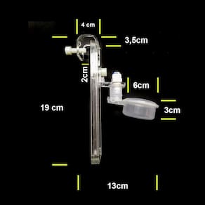 Boia de nível com suporte em acrílico de 1 a 15cm de regulagem, utilizados para várias funções, especialmente em sumps e caixas de reposição em aquários.