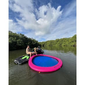 Chegou ao brasil a incrível boia deck summer jet cooler, a sensação dos passeios aquáticos que também é perfeita para mar, piscinas e rios. Experimente a sensação única de estar com os pés na água onde quer que esteja. Totalmente inflável, ela é fácil de transportar e armazenar, proporcionando uma refrescante conexão com a água. Feita com pvc de lona de alta resistência, utilizando tecnologia militar para garantir durabilidade ao longo de vários verões. Equipada com convites para engates de cabos, possui um diâmetro de 2,4 metros e uma memória de curvatura que permite que a rede de fundo submerja suavemente na água quando utilizada.