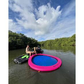 Chegou ao brasil a incrível boia deck summer jet cooler, a sensação dos passeios aquáticos que também é perfeita para mar, piscinas e rios. Experimente a sensação única de estar com os pés na água onde quer que esteja. Totalmente inflável, ela é fácil de transportar e armazenar, proporcionando uma refrescante conexão com a água. Feita com pvc de lona de alta resistência, utilizando tecnologia militar para garantir durabilidade ao longo de vários verões. Equipada com convites para engates de cabos, possui um diâmetro de 2,4 metros e uma memória de curvatura que permite que a rede de fundo submerja suavemente na água quando utilizada.