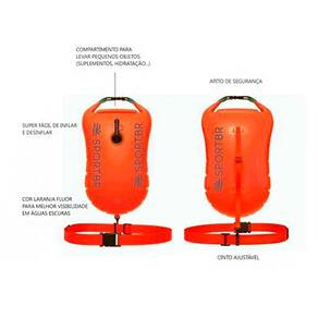 Bóia E Sinalizador Para Natação Mar Aberto Laranja SportbrNade com segurança. Bóia de sinalização para nadar, com faixa e apito de segurança da marca SPORTBR. A bóia da SPORTBR de 15L é altamente recomendada para quem vai nadar em águas abertas, rios ou lagos.Durante o exercício podem ocorrer câimbras, lesões, mal estar, ... A bóia serve para dar um suporte e também garante maior visibilidade do nadador durante o exercício.Especificações:- cor laranja para melhor visibilidade em águas mais escuras.- compartimento para levar pequenos objetos. ( suplementos, hidratação ...)- apito de segurança- cinto ajustável- câmara inflável separada da área de armazenamento, proporcionando assim mais flutuabilidade.- Super fácil de inflar e desinflar.