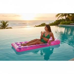 Esse colchão inflável Intex bote copinhos rosa transforma piscinas em oásis de conforto, com design atrativo e flutuação estável para horas de lazer sem preocupações. Leve e fácil de transportar, resiste a perfurações comuns, ideal para quem busca boia colchão inflável rosa verão resistente e estiloso.