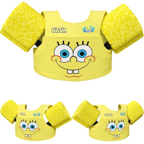 Marca: Nash Modelo: Coleta Salva Vidas Material: Tecido Oxford e espuma de polietileno expandido Personagem: Bob Esponja Tamanho: 33 x 20 cm Idade recomendada: 1 a 7 Anos. Peso: 12kg até 25kg Fabricante: Nash Boias