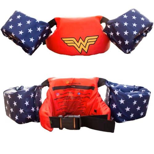 FÁCIL DE AJUSTAR: regulagem feita atravás de um 'cinto com gancho' na parte de trás do colete que possibilita regular de acordo com o tamanho da criança.
