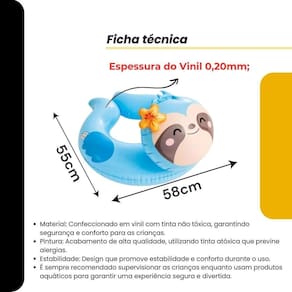Design Divertido: Com um divertido tema de animal em azul, a boia atrai a atenção dos pequenos, tornando a hora do banho ou da piscina uma experiência lúdica e envolvente.