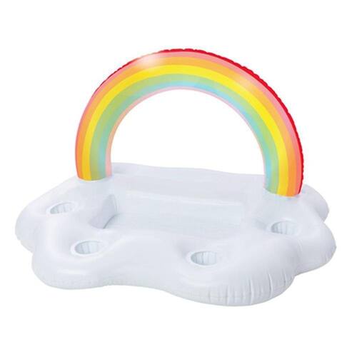 Boia Inflável Bandeja e Porta Copos Nuvem e Arco-Íris 85x60cm Swim Ring Com design moderno em formato de arco-íris, o Cooler Inflável é adequado para 4 copos/latas e petiscos, pratos no centro. (forma retangular). Medidas: 95cm (L) x 50cm (A) x 95cm (P)Peso: 0,550gMaterial: PVC, vinil reforçadoIMETRO OPC0158