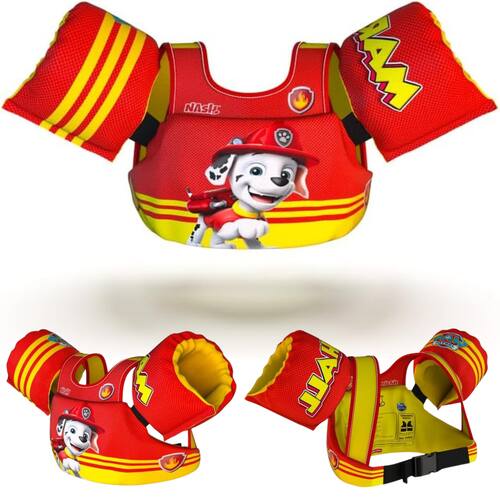 Marca: Nash Modelo: Coleta Salva Vidas Material: Tecido Oxford e espuma de polietileno expandido Personagem: Marshall Tamanho: 33 x 20 cm Idade recomendada: 1 a 7 Anos. Peso: 12kg até 25kg Fabricante: Nash Boias