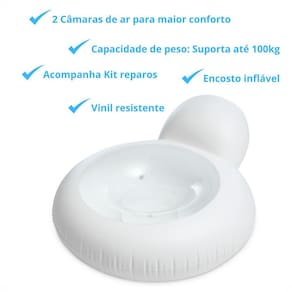 Design de poltrona: Encosto inflável para maior conforto e estabilidade. Material resistente: Fabricada em vinil de alta qualidade, durável e fácil de limpar. Tamanho espaçoso: Dimensões adequadas para adultos, garantindo espaço e conforto durante o uso. Fácil de inflar e desinflar: Válvulas de alta eficiência que facilitam o processo de montagem e armazenamento. Leve e portátil: Ideal para levar em viagens e passeios para praia, piscina ou lago.