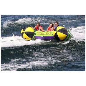 O mais tubo rebocável de 3 pilotos da Airhead é um tubo de convés que oferece mais salto para pilotos experientes. Este tubo rebocável foi projetado com uma frente elevada e possui alças de montagem para que você possa voltar da água. Três pilotos podem voar com cada esteira, curva e salto graças a este design cônico. Feita de bexiga de PVC soldada por RF de calibre 30 durável que é completamente coberta em nylon 840 denier com costura dupla Equipado com um prendedor de corda Kwik Connect para conexões rápidas de barco na água Marca: Não Informado