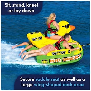 Assento de selim para 2 pilotos com assento de almofada de espuma EVA e uma cauda macia personalizada para um passeio no rebocável inflável. Grandes almofadas de espuma EVA no convés para os side riders. Sistema de pára choques lateral para manter os pilotos no tubo para passeios extremos. Rebocável de 1 a 3 pessoas este tubo rebocável de luxo personalizado apresenta um tema de design wow Big ducky, assento de sela , bem como uma grande área de deck em forma de asa para 1, 2 ou 3 pilotos para sentar, ficar de pé, ajoelhar ou deitar baixa. Design de cores de alta visibilidade O pato inflável tem um design peculiar e único. A cor de alta visibilidade com gráficos de outdoor cria emoção para os pilotos, mas também permite que todos na água saibam que você está lá. Construção robusta este tubo Duck possui uma construção de sistema de reboque de 3 pontos para serviço pesado, com membrana larga. Conector EZ TOW moldado embutido para conexão do ponto de reboque EZ. A construção de nylon resistente oferece estabilidade durante o passeio mais difícil. Tipo de ajuste ajuste universal Marca: Não Informado