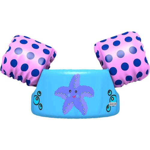 Boia Sea Float com proteção nos braços e colete, a boia pode ser ajustada apartir de uma cinta na parte de trás. Movimento dos braços e pernas livres. Não necessita enhcer e não fura, além de contar com secagem rápida. Conta com preenchimento feito de espuma de polietileno expandido, com alto poder flutuante, costurado em linha de poliéster.