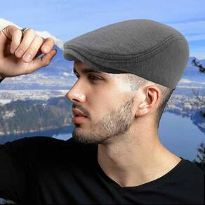 Boina masculina de malha fio penteado 100% algodão cinza - Cinza - Regulável