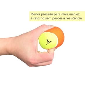 Cor: Laranja/AmareloA Bola de Beach Tennis Lorben foi fabricada com baixa pressão para deixá-la mais lenta, conforme as regras da modalidade, proporcionando mais firmeza e maciez em suas jogadas. Isto proporciona mais tempo para a preparação da jogada e aumenta o índice de acerto do golpe.Por ser aproximadamente 50% mais lentas do que as bolas tradicionais, é indicada também para a prática de tênis stage 2, por crianças de 6 a 8 anos e raquetes com 23 polegadas (infantil) polegadas.Bolas de Beach Tennis podem ser usadas não somente como acessório de jogos, mas também como um equipamento de massagem manual e em brincadeiras infantis para estimular nas crianças o desenvolvimento da coordenação motora, agilidade, atenção e concentração.- Menor pressão para mais maciez e retorno sem perder a resistência- Velocidade de jogo adaptada à prática de Beach Tennis- Alta durabilidadeMarca: LorbenMaterial: Borracha e feltroDiâmetro de cada bola: 6cmPeso de cada bola: 50gTamanho da embalagem: 19x16x7cmPeso da embalagem: 230gCódigo do produto: 6009Imagens ilustrativas. As tonalidades podem variar.