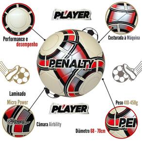 A Bola de Futebol de Campo Penalty Player XXIII conta com Câmara Arbility que é feita com borracha butílica, possuindo sistema de balanceamento com resistência a retenção de ar, e ótima durabilidade.