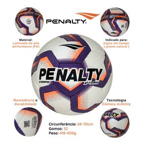 Alguns diferencias técnicos: A Bola Campo Penalty Storm XXIII foi desenvolvida com tecnologia Câmara Airbility, sistema de balanceamento que garante ótima retenção dear. Conta também com miolo removível que facilita no momento da lubrificação e substituição caso seja necessária.