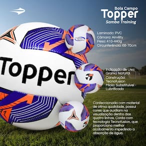 A Bola De Futebol Campo Samba Training Topper é o que você precisa para garantir a melhor partida com os amigos. Garanta uma partida de alta qualidade para quem busca o controle e precisão durante os chutes. Confeccionada com material de ótima qualidade, possui cores que auxiliam na visualização dentro das quatro linhas. Conta com tecnologia Tecnofusion, que proporciona melhor acabamento impedindo a absorção de água.