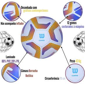 DETALHES: - Gênero: Unissex - Construção: 12 gomos costurados à máquina - Circunferência: 70 cm - Peso: 424g - Tamanho: Nº 5 - Inflador: Não acompanha inflador - Composição: Fabricada em Microfibra, 80% PVC 20% PU com camada interna em espuma