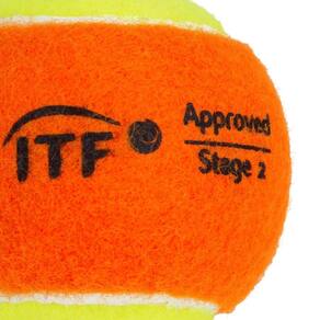 - Detalhamento: Bola de tênis - estágio 02. Idicada para crianças entre 6 e 8 anos, bola 50% mais lenta que as tradicionais, embalagem com três bolas na cor laranja. Pode ser usada para jogos de beach tennis. Aprovada pela ITF;