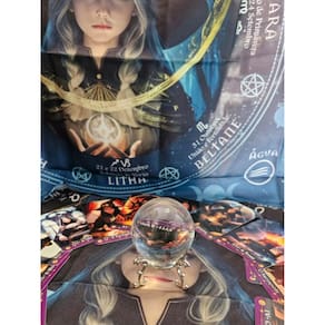 Bola de Cristal de Vidro Transparente (6 cm) – símbolo de sabedoria e visão interior, ideal para leitura energética, meditação, clarividência. Feita com vidro de alta pureza para máxima nitidez.Base Inclusa – elegante e resistente, valoriza a peça e facilita seu uso decorativo.Toalha Wicca com Símbolos Sagrados – perfeita para montar seu altar, realizar tiragens de tarot ou criar um espaço sagrado de conexão e proteção.