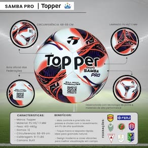 Prepare-se para elevar o nível das suas partidas com a Bola de Campo Topper Samba Velocity Pro! Desenvolvida com tecnologia de ponta e materiais de alta performance, ela oferece precisão, resistência e controle incomparáveis dentro das quatro linhas. Com design moderno e cores vibrantes, a Samba Velocity Pro garante excelente visibilidade durante o jogo e mantém o desempenho consistente em todas as condições.