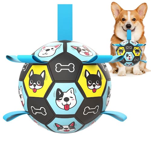 ZestPulse Brinquedos para cães, bola de futebol com tiras, brinquedos interativos para cães para cabo de guerra, brinquedo aquático para cães, presentes de aniversário de filhotes, bolas duráveis para cães de pequeno e médio porte (15 cm) - Libere alegria e inteligência: nossas bolas para cães são as melhores que trazem alegria! Projetado para ajudar seu amigo peludo a liberar energia reprimida, aumentar a inteligência e afastar a solidão, eles são uma parte essencial da vida de qualquer cão feliz. Não hesite — nossos brinquedos de bola de cachorro são o presente de aniversário perfeito para o seu companheiro canino! - Material seguro e durável: feitas de couro composto de qualidade premium, nossas bolas de futebol para cães oferecem a mesma durabilidade robusta das bolas de futebol profissionais e atendem a rigorosos padrões de segurança semelhantes aos brinquedos infantis. Estas bolas são ideais para cães grandes com peso entre 13,6 e 40,8 kg. Prepare-se para brincadeiras de alta energia! - Engaje e entretenha. Com 9 tiras de nylon duráveis, esses brinquedos para filhotes facilitam a busca, jogar, puxar e recuperar. A alça estendida permite fácil interação humana, transformando a hora de brincar em uma emocionante sessão de treinamento. É a melhor bola de pastoreio interativa para diversão ao ar livre! - Mergulhe na diversão na água - com um design leve e flutuante, nossas bolas para cães são perfeitas para aventuras cheias de respingos em piscinas, lagos ou na praia. A alça de nylon facilita a brincadeira do seu cão e garante diversão infinita na água. - Conveniência na ponta dos dedos - cada bola de pastoreio chega vazia e inclui uma bomba junto com um adaptador de agulha, tornando a inflação rápida e sem esforço. Apenas algumas bombas e o novo brinquedo favorito do seu cão está pronto! - Brinquedo interativo, não é um brinquedo para mastigar - observe que esta bola é projetada para brincadeiras interativas, não como um brinquedo para mastigar. Se você tiver alguma dúvida ou precisar de ajuda, nossa equipe de especialistas está aqui para fornecer soluções e garantir que você e seu cão tenham a melhor experiência possível!
