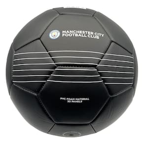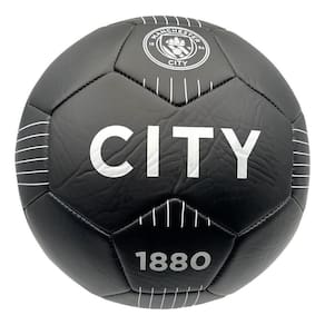 Bola De Futebol Oficia Manchester City Oficial 5 Uma bola, em preto, com detalhes em prata e com o símbolo do time estampado nela. Produto Oficial Manchester City. Confeccionada com PVC Resistente, câmara feita com borracha butílica Medidas aproximadas: número 5. Marca: Não Informado