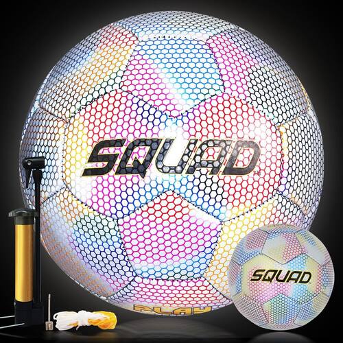 Bola de futebol reflexiva – O material reflexivo de nova geração é utilizado nesta bola de futebol holográfica, fazendo com que a bola de futebol tenha um melhor efeito holográfico reflexivo e brilhante. O efeito holográfico perfeito da bola de futebol é tirar fotos ou vídeos com o flash da câmera ligado. A bola de futebol holográfica com efeito de reflexão é uma bola de futebol de tamanho oficial que aparece holograficamente ou brilha em fotos ou vídeos quando o flash da câmera do telefone está ligado. 2 métodos de iluminação câmera de celular com flash por refração. Presente perfeito Este é um ótimo presente para crianças, amigos e familiares apaixonados por futebol. O pacote inclui 1 bola de futebol refletiva Especificação: Tipo: Bola de futebol refletiva Material: Forro de borracha + Couro PU refletivo Tamanho: Tamanho 5 - ?Efeito reflexivo que chama os olhos – Esta bola de futebol não é apenas uma bola normal, é uma bola holográfica que brilha sob uma lanterna ou o flash do seu telefone. Fica incrível em fotos e vídeos, especialmente à noite. Você vai adorar como ela brilha e brilha. - 👍 Fácil de usar e reabastecer – a bola de futebol reflexiva vem com um airbag de borracha flexível que mantém boa elasticidade e desempenho. Você pode facilmente encher a bola de futebol com uma bomba padrão quando recebê-la. Você também pode ajustar a pressão do ar de acordo com sua preferência e estilo de jogo. - Fresca e exclusiva: esta bola de futebol tem um efeito reflexivo que a faz se destacar da multidão. É uma ótima maneira de mostrar sua personalidade e estilo, e impressionar seus amigos e seguidores nas redes sociais. Você receberá muitos elogios e gostos. - Tamanho oficial 5 – Esta bola de futebol tem o tamanho padrão para adultos e crianças e tem a mesma elasticidade de uma bola de jogo. Você pode usá-lo para praticar suas habilidades de futebol, jogar partidas ou se divertir com seus amigos e familiares. - 🎁 Ideia de presente perfeita – Se você está procurando um presente especial e prático para um fã de futebol, esta bola de futebol é uma ótima escolha. Não é apenas uma bola de futebol, mas também um brinquedo que pode ser jogado à noite. É uma maneira divertida e criativa de aproveitar o futebol e criar memórias inesquecíveis. Peça o seu hoje!