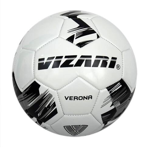 As bolas de futebol Vizari 'Verona' são ótimas para crianças e adultos com tamanhos 3, 4 e 5 disponíveis e  para escolher, há uma bola para todos os jogadores. Construção: 32 painéis, bola de futebol costurada à máquina. Material da capa: PVC brilhante 2,70 mm macio e esponjoso com 2 camadas de forro de tecido. Bexiga: bexiga de borracha com rosca. Vizari. Jogo On, Sempre.