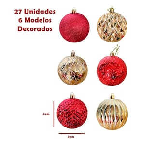 Este conjunto de bolas de Natal é composto por 27 unidades, com 6 modelos diferentes, proporcionando uma combinação harmoniosa e sofisticada para a decoração natalina. Cada bola possui um diâmetro de 8 cm e vem equipada com uma linha resistente para ser pendurada com facilidade, garantindo versatilidade e praticidade na ornamentação de árvores, guirlandas e outros espaços festivos. Detalhes dos Modelos: