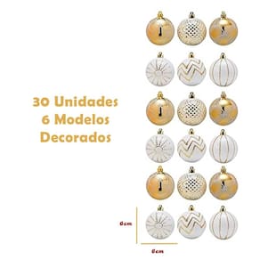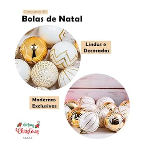 Este elegante kit de bolas de Natal contém 30 unidades, perfeitas para adicionar um toque especial e sofisticado à sua decoração natalina. Composto por 6 modelos diferentes, ele proporciona variedade e charme ao seu ambiente. 6 Bolas Brancas com Desenhos em Glitter Dourado: Três modelos distintos, cada um com padrões únicos em glitter dourado, que brilham e refletem a luz, criando um efeito mágico. Estes desenhos variam entre motivos clássicos, proporcionando um toque de delicadeza e requinte. 6 Bolas Douradas com Desenhos em Branco: Três modelos diferentes com acabamento fosco ou brilhante, decorados com desenhos em branco que criam um contraste harmonioso e elegante. Cada bola possui um diâmetro de 6 cm, um tamanho ideal para se destacar na decoração, sem sobrecarregar a árvore. Todas as bolas vêm com uma linha resistente e prática para serem penduradas, facilitando a aplicação em qualquer arranjo natalino. Este kit é perfeito para quem busca diversidade e elegância em sua decoração, trazendo a essência e o brilho do Natal para o seu lar. Marca: Não Informado