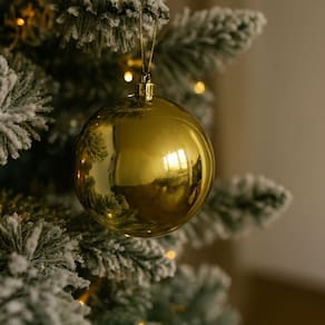 Decore sua árvore de Natal com a clássica bola dourada brilhante, um enfeite atemporal que traz sofisticação e luminosidade para a sua decoração natalina. Seu acabamento tradicional liso e reluzente realça a iluminação da árvore e combina com diferentes estilos de ornamentos, criando uma composição harmoniosa.