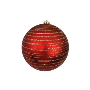 Destaque sua decoração com esta bola natalina grande de 15cm de diâmetro, perfeita para árvores maiores, arcos de festões e até fachadas. O acabamento em vermelho fosco com detalhe em espiral glitter dourado traz brilho e sofisticação para composições natalinas modernas ou tradicionais.