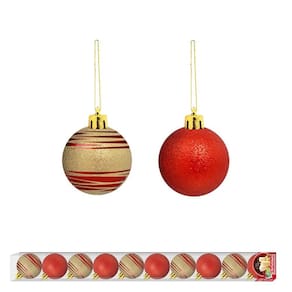 Bola de Natal Mônaco Vermelha Listrada Brilhante 10 Unidades