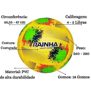 A Bola de Vôlei Rainha Sunny é a escolha perfeita para quem busca diversão e desempenho nas quadras ou na praia. Com um design vibrante em amarelo e detalhes coloridos, ela não passa despercebida e traz mais energia para cada jogada.
