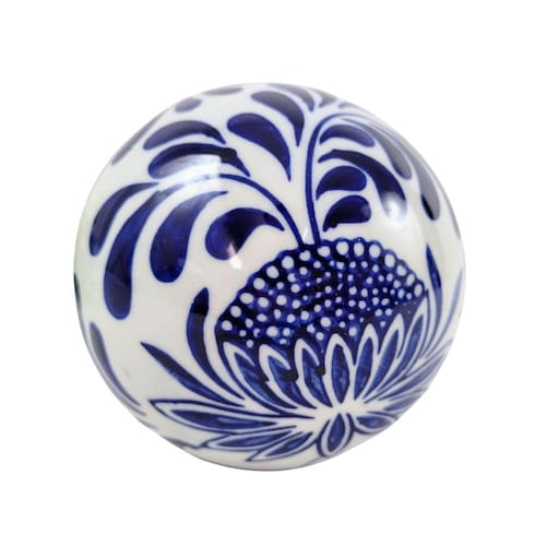 Bola Decorativa Porcelana Floral Azul e Branca 10cm Bola Decorativa de Porcelana Floral Branca e Azul Inigual Decor A Bola Decorativa de Porcelana Floral Branca e Azul é uma peça clássica que traz sofisticação e charme atemporal à decoração. Com acabamento em porcelana de alta qualidade, apresenta estampa floral em azul sobre fundo branco, inspirada na estética oriental. Ideal para compor bandejas decorativas, prateleiras ou mesas, a peça se destaca tanto individualmente quanto em composições com outras bolas decorativas. Seu design refinado valoriza ambientes com elegância e sutileza. Principais Características: Estilo Clássico com Influência Oriental: Padrão floral azul sobre fundo branco. Acabamento em Porcelana: Brilho e textura que evidenciam a qualidade do material. Peça Versátil: Pode ser Utilizado sozinha ou em conjunto com outras peças. Compacta e Elegante: Ideal para diferentes tipos de ambientes e composições. Especificações: Diâmetro aproximado: 10 cm Peso: 450 g Material: Porcelana Cor: Branco com estampa floral azul Conteúdo da Embalagem: 1 Bola Decorativa de Porcelana Floral Branca e Azul Cuidados com o Produto: Limpeza com pano seco ou levemente umedecido. Não utilizar produtos abrasivos. Evitar quedas e exposição direta ao sol ou à umidade. Observação: os demais itens exibidos nas imagens não acompanham o produto. Marca: Não Informado
