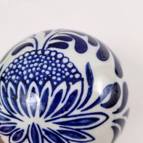 Bola Decorativa Porcelana Floral Azul e Branca 10cm Bola Decorativa de Porcelana Floral Branca e Azul Inigual Decor A Bola Decorativa de Porcelana Floral Branca e Azul é uma peça clássica que traz sofisticação e charme atemporal à decoração. Com acabamento em porcelana de alta qualidade, apresenta estampa floral em azul sobre fundo branco, inspirada na estética oriental. Ideal para compor bandejas decorativas, prateleiras ou mesas, a peça se destaca tanto individualmente quanto em composições com outras bolas decorativas. Seu design refinado valoriza ambientes com elegância e sutileza. Principais Características: Estilo Clássico com Influência Oriental: Padrão floral azul sobre fundo branco. Acabamento em Porcelana: Brilho e textura que evidenciam a qualidade do material. Peça Versátil: Pode ser Utilizado sozinha ou em conjunto com outras peças. Compacta e Elegante: Ideal para diferentes tipos de ambientes e composições. Especificações: Diâmetro aproximado: 10 cm Peso: 450 g Material: Porcelana Cor: Branco com estampa floral azul Conteúdo da Embalagem: 1 Bola Decorativa de Porcelana Floral Branca e Azul Cuidados com o Produto: Limpeza com pano seco ou levemente umedecido. Não utilizar produtos abrasivos. Evitar quedas e exposição direta ao sol ou à umidade. Observação: os demais itens exibidos nas imagens não acompanham o produto. Marca: Não Informado