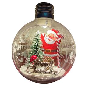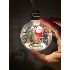 A Bola para árvore de Natal LED Natalina com Papai Noel é a decoração perfeita para tornar seu Natal ainda mais encantador! Com um design criativo e iluminado, essa bola possui um formato de lâmpada e traz a figura adorável do Papai Noel, juntamente de uma árvore de natal e um letreiro escrito 'Merry Christmas', criando um ambiente mágico e acolhedor.