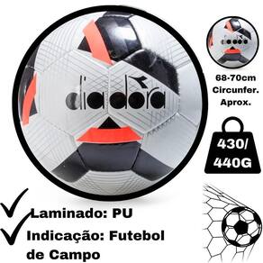 Especificações: Produto contém: 1 uma bola de futebol de campo pro costurada; Modelo: pro costurada; Marca: diadora; Indicação: futebol de campo - grama sintética/natural; Laminado: pu; C/tecnologia tech fusion; Miolo: lubrificado; Lbs: 08/10; Peso aproximado: 430-440g; Circunferência aproximada: 68-70cm;