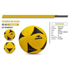 Bola Futevôlei KagivaA Bola Kagiva Futvôlei foi elaborada para os craques aprimorarem suas habilidades e brilharem nos jogos. Indicada para a areia Futebol de Areia.Características:- Laminado: Navajo - 3,2mm- Construção: Tecnofusion- Câmara: Airvility- Miolo: Substituível - Lubrificado- Peso: 410 - 440 gr- Gomos: 6- Circunferência: 68-70 Cm- Calibragem 07-09 LibrasOBS: A bola pode vir com a calibragem alterada. Portanto, antes de utilizá-la, verifique e, se necessário, regule.