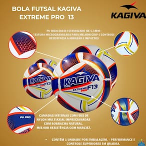 Sinta a revolução do futsal nos seus pés. A Bola Kagiva Extreme Pro F13 não é apenas um equipamento; é a extensão do seu talento na quadra. Projetada para quem busca a excelência, ela combina tecnologia de ponta com um toque de bola incomparável, garantindo que cada passe, drible e finalização seja executado com a máxima precisão. A marca F13 indica que esta é uma bola Oficialmente Aprovada e Recomendada para jogos e competições de Federações. Jogue com a certeza de estar usando um equipamento que atende aos mais altos e rigorosos padrões técnicos do futsal profissional.