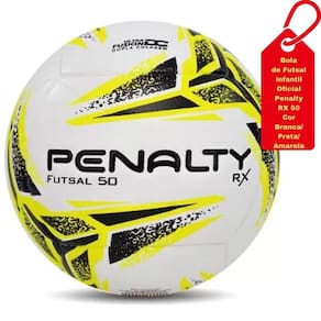 Bola futsal oficial penalty rx 50 xxi infantil cores: branca/preta/amarela o design de bola que dispensa comentários a renomada marca penalty traz até você, a super profissional bola de futsal 50 rx infantil com um retoque que artilheiros e craques infantis e mirins merecem