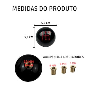 Produto universal, se encaixa em vários veículos sendo ele novo ou antigo. Acompanha adaptadores (M6, M8 e M10 e M12) que torna a Manopla Universal, sendo ajustável a todos os padrões de rosca existentes no Mercado.
