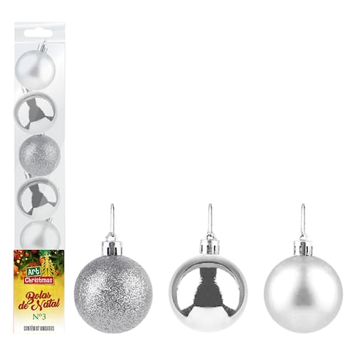 BOLA NATALINA P/ ARVORE LISA PRATA 3CM 7PCS