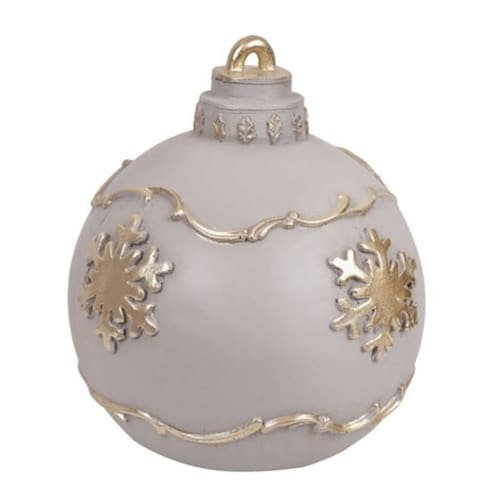 Adicione um toque de elegância e detalhe artístico à sua decoração de mesa ou aparador com esta encantadora Bola Natalina Decorada em Resina.
