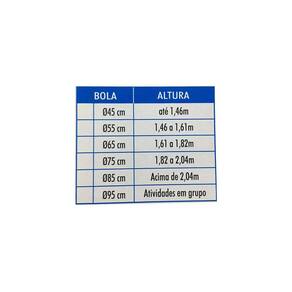 CARACTERÍSTICAS: • Cor: Verde • Produto vinílico, atóxico• Capacidade para suportar até 200kg• Recomendada para pessoas com altura de até 1,47 e 1,61m• Fabricada no Brasil, com padrão e qualidade internacional DIMENSÕES : • Ø 55cm Peso: • Peso: 1,4kg