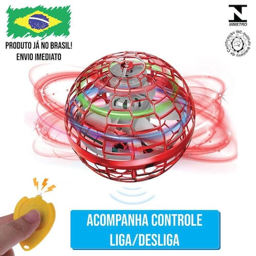 Qualidade em primeiro lugar ------------------------------------------------------------------------------------------------Bola spinner voadora boomerang com led colorido e controle remotoO spinner voador é uma bola voadora motorizada com hélices que flutua, desliza e sobe no ar ao seu comando, depois retorna para a sua mão como um bumerangue, é possível fazer inúmeros movimentos conforme a maneira que você jogar. Você pode realizar acrobacias, jogar com outras pessoas e muitas outras brincadeiras. Assista o vídeo disponível apenas no computador e descubra como é divertido Brinquedo indicado para crianças a partir de 6 anos e adultos.- fácil de usar e divertido de brincar.- incline a bola voadora para trás, jogue-a fora e ela voltará para sua mão- coloque horizontalmente sobre a palma da mão e ela pode levitar- o material da casca esférica é flexível o suficiente e resistente não chutar - flexível e durável, capaz de resistir a choques e quedasEspecificações técnicas do produto:- material: plástico pp- dimensões: 95 x 95 x 95mm- cores disponíveis: azul, vermelho, rosa e dourado- capacidade da bateria: 200mah- duração da bateria: 6 a 8 minutos- tempo recomendado para recarga: 25 a 40 minutos Conteúdo na embalagem:- 1 bola voadora- 1 controle- 1 cabo usb Marca: ASI