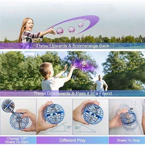 Qualidade em primeiro lugar ------------------------------------------------------------------------------------------------Bola spinner voadora boomerang com led colorido e controle remotoO spinner voador é uma bola voadora motorizada com hélices que flutua, desliza e sobe no ar ao seu comando, depois retorna para a sua mão como um bumerangue, é possível fazer inúmeros movimentos conforme a maneira que você jogar. Você pode realizar acrobacias, jogar com outras pessoas e muitas outras brincadeiras. Assista o vídeo disponível apenas no computador e descubra como é divertido Brinquedo indicado para crianças a partir de 6 anos e adultos.- fácil de usar e divertido de brincar.- incline a bola voadora para trás, jogue-a fora e ela voltará para sua mão- coloque horizontalmente sobre a palma da mão e ela pode levitar- o material da casca esférica é flexível o suficiente e resistente não chutar - flexível e durável, capaz de resistir a choques e quedasEspecificações técnicas do produto:- material: plástico pp- dimensões: 95 x 95 x 95mm- cores disponíveis: azul, vermelho, rosa e dourado- capacidade da bateria: 200mah- duração da bateria: 6 a 8 minutos- tempo recomendado para recarga: 25 a 40 minutos Conteúdo na embalagem:- 1 bola voadora- 1 controle- 1 cabo usb Marca: Asi