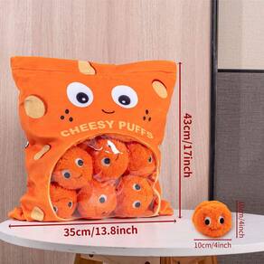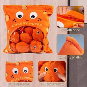 -?Material de almofada?O brinquedo de pelúcia Cheesy Puffs é feito de pelúcia curta de alta elasticidade, algodão 3DPP. Alta qualidade, macio, agradável à pele e fofo. A melhor experiência de descanso para a cabeça e as costas.