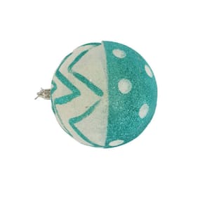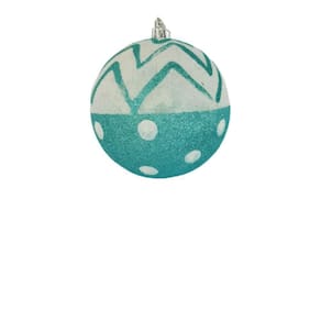 Kit com 2 bolas decorativas de natal branca com azul, confeccionada em PVC revestida com tinta e glitter.