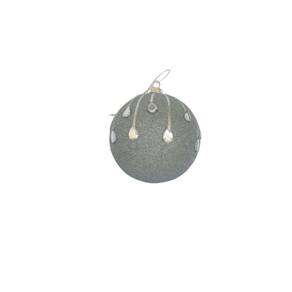 kit com 3 Bolas Decorativas de Natal na cor prata, estrutura em EPS revestida com gotículas de EPS, detalhes com fio e pedrarias.