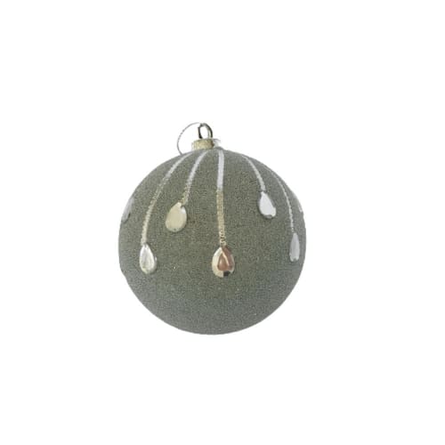 kit com 3 Bolas Decorativas de Natal na cor prata, estrutura em EPS revestida com gotículas de EPS, detalhes com fio e pedrarias.
